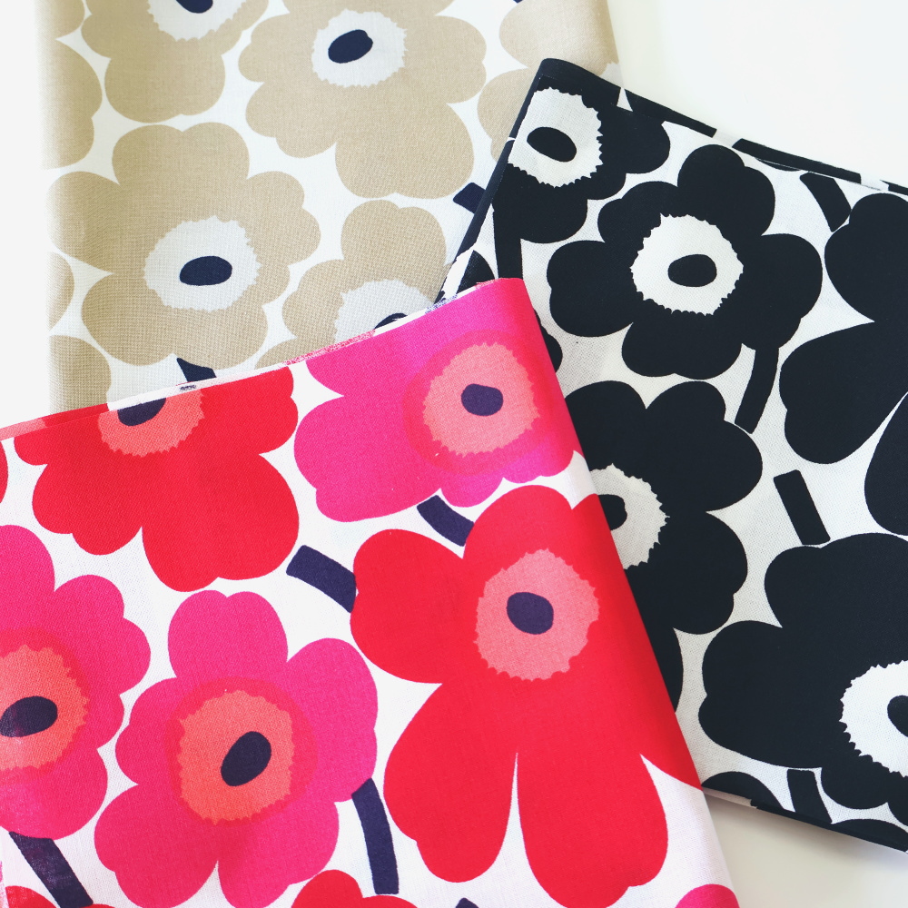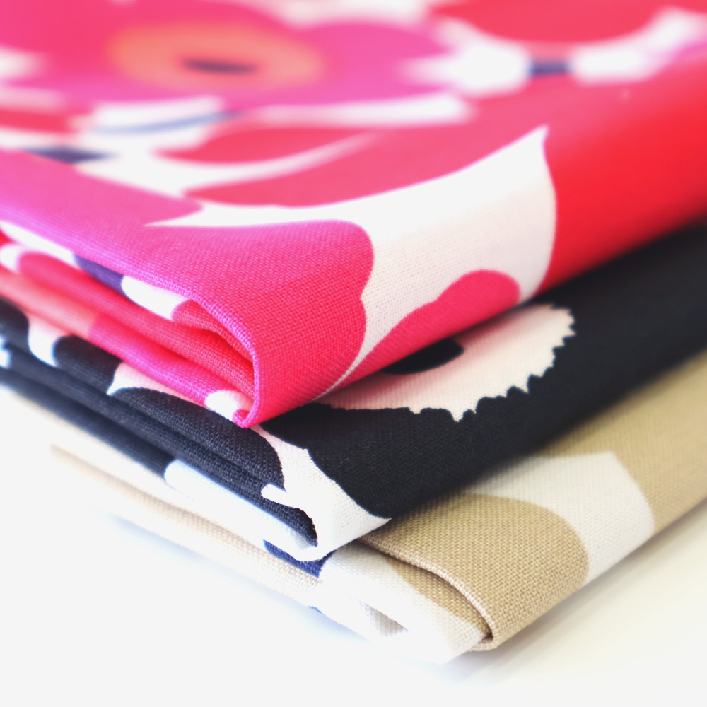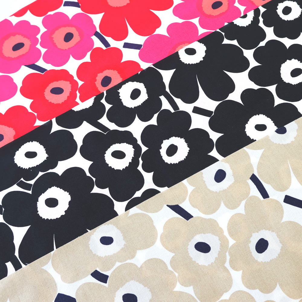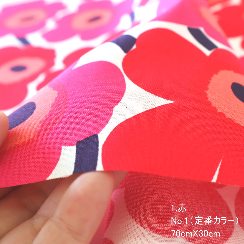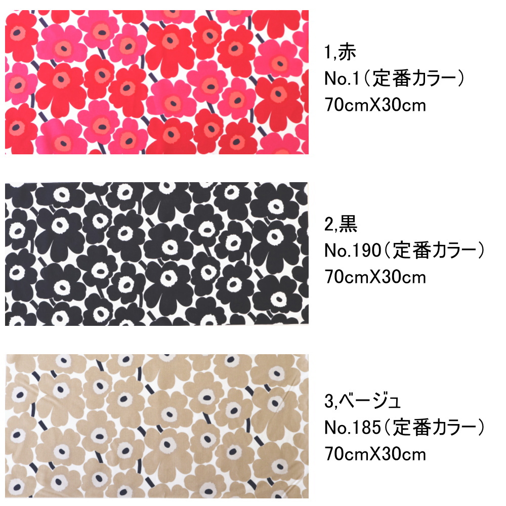 マリメッコミニウニッコの定番カラー、ハーフカットサイズ色違い3枚セットでの販売です。1枚当たりのサイズはお試しサイズの70X30cmです。色を組み合わせての小物製作やお友達とシェアされても♪