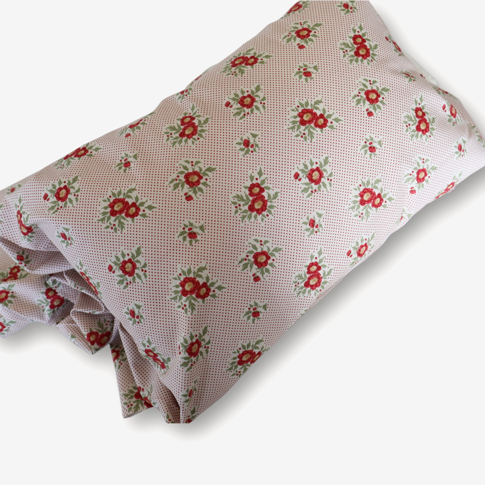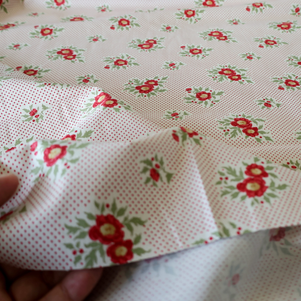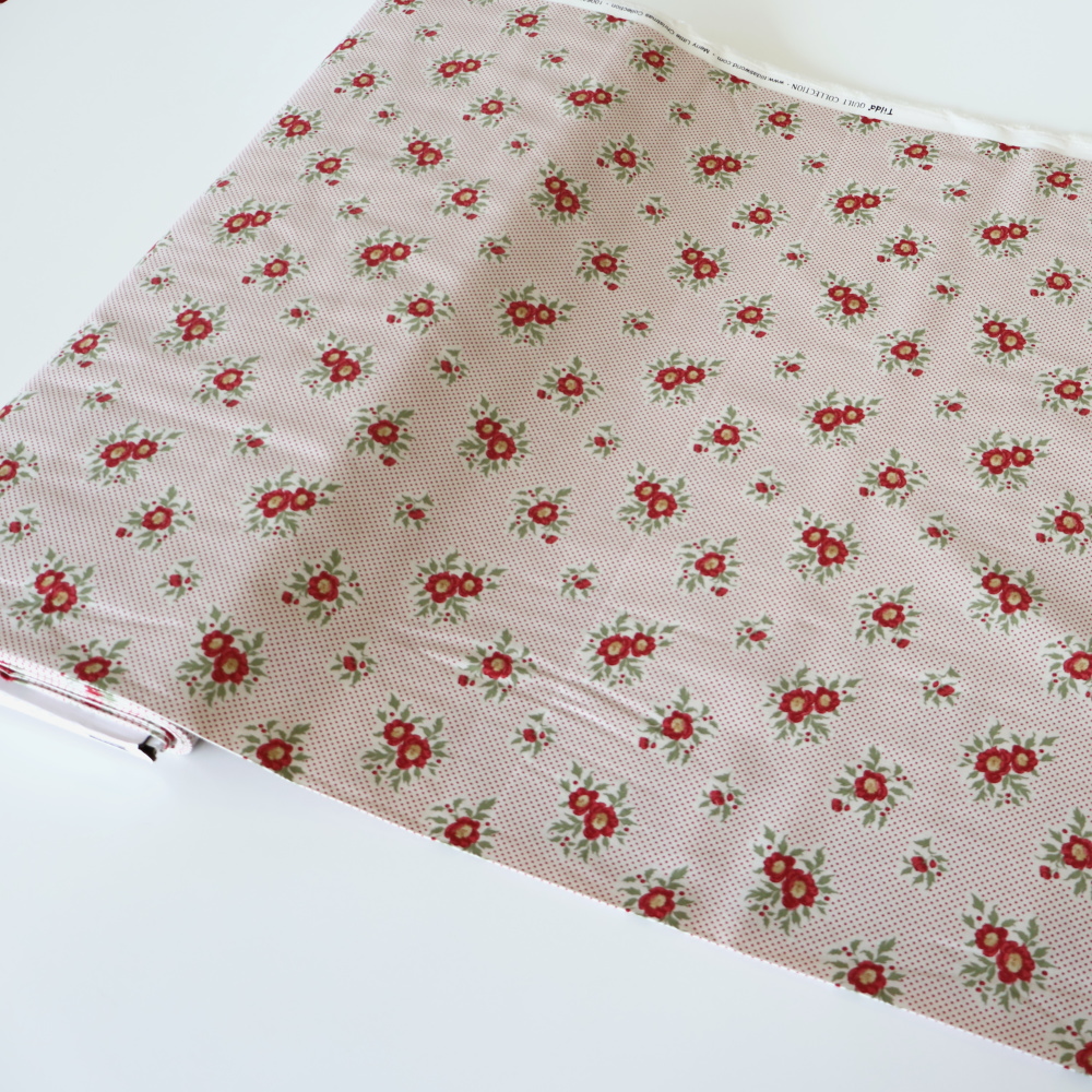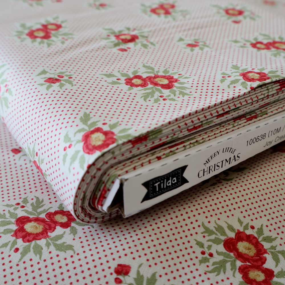 ノルウェーのテキスタイルブランド「Tilda」から届いた、2025年秋冬コレクション MERRY LITTLE CHRISTMAS の一柄。赤いさざんかと細かなドットがリズミカルに並ぶ愛らしい生地は、冬のハンドメイドやインテリアにぴったり。110cm幅の使いやすいコットン生地で、10cm単位の切り売りだから必要な分だけ購入できます。テーブルクロス、キルト、クッションカバー、ギフトラッピングまで、冬時間を彩るアイテム作りに活躍します。