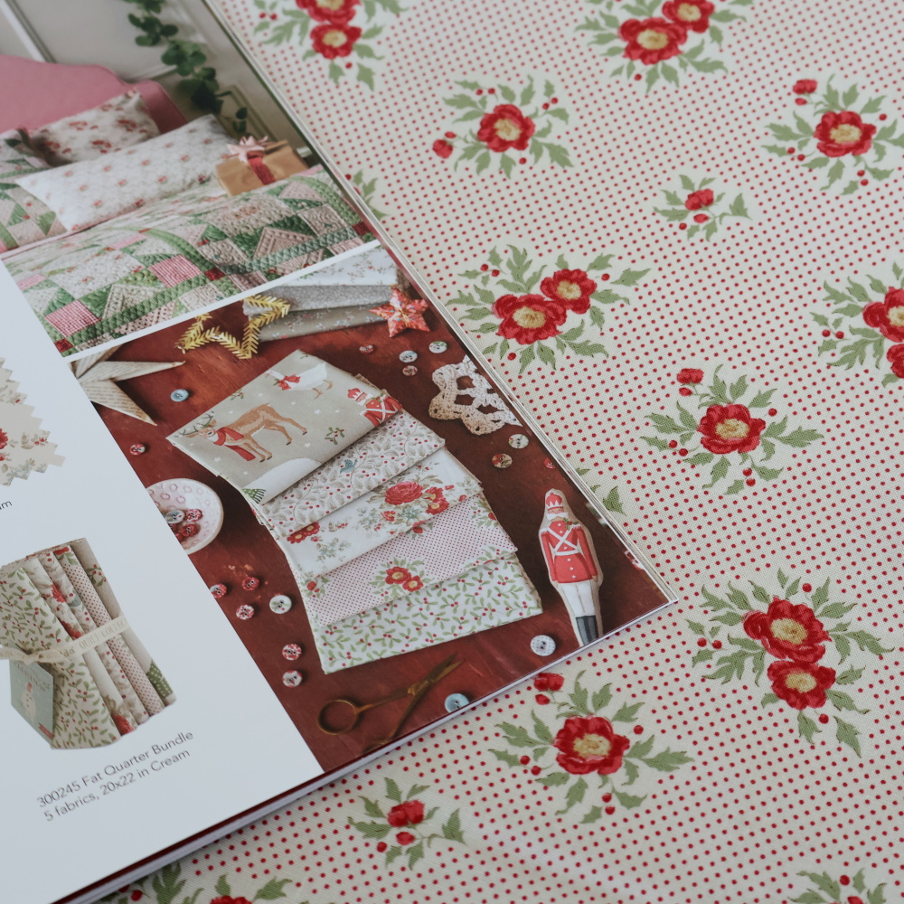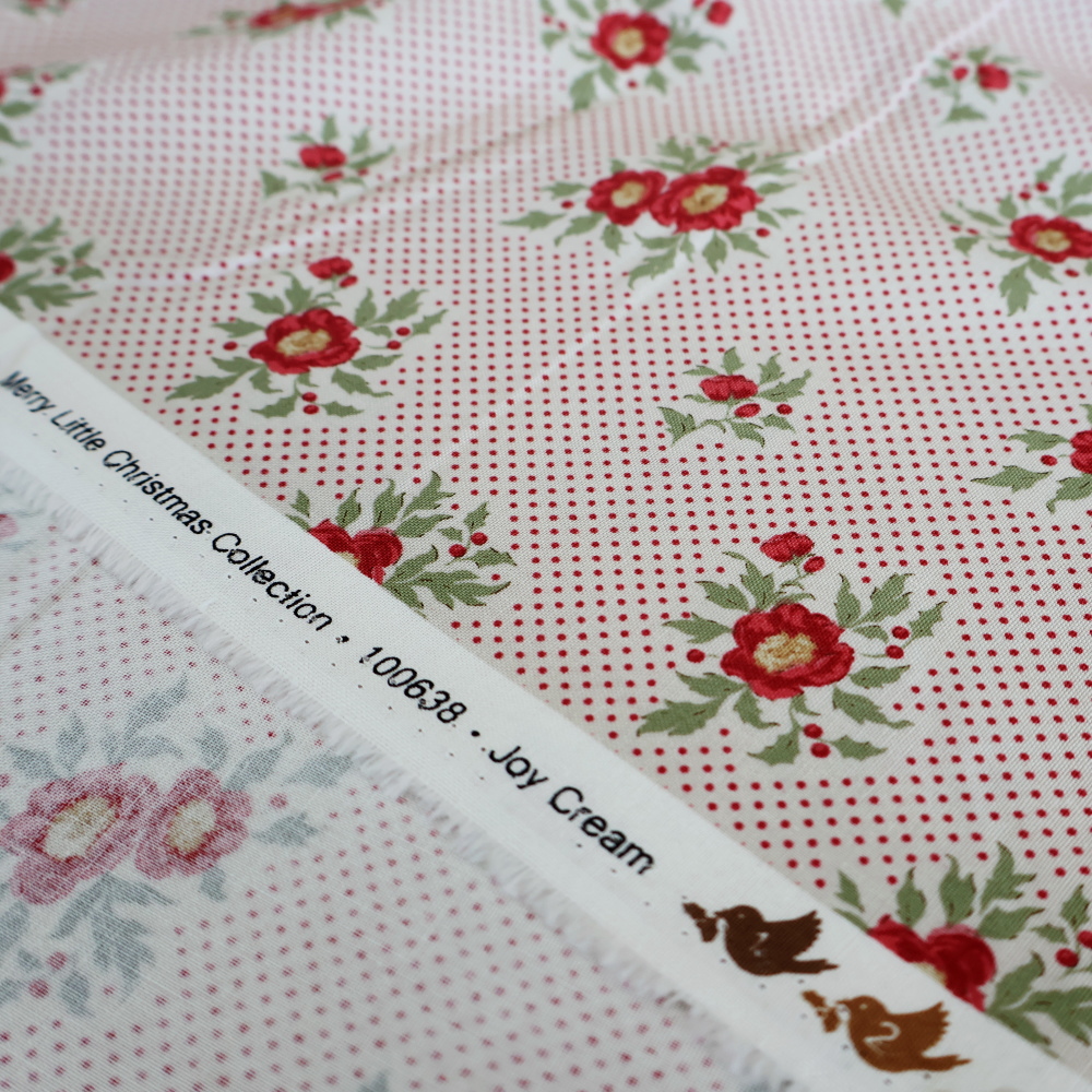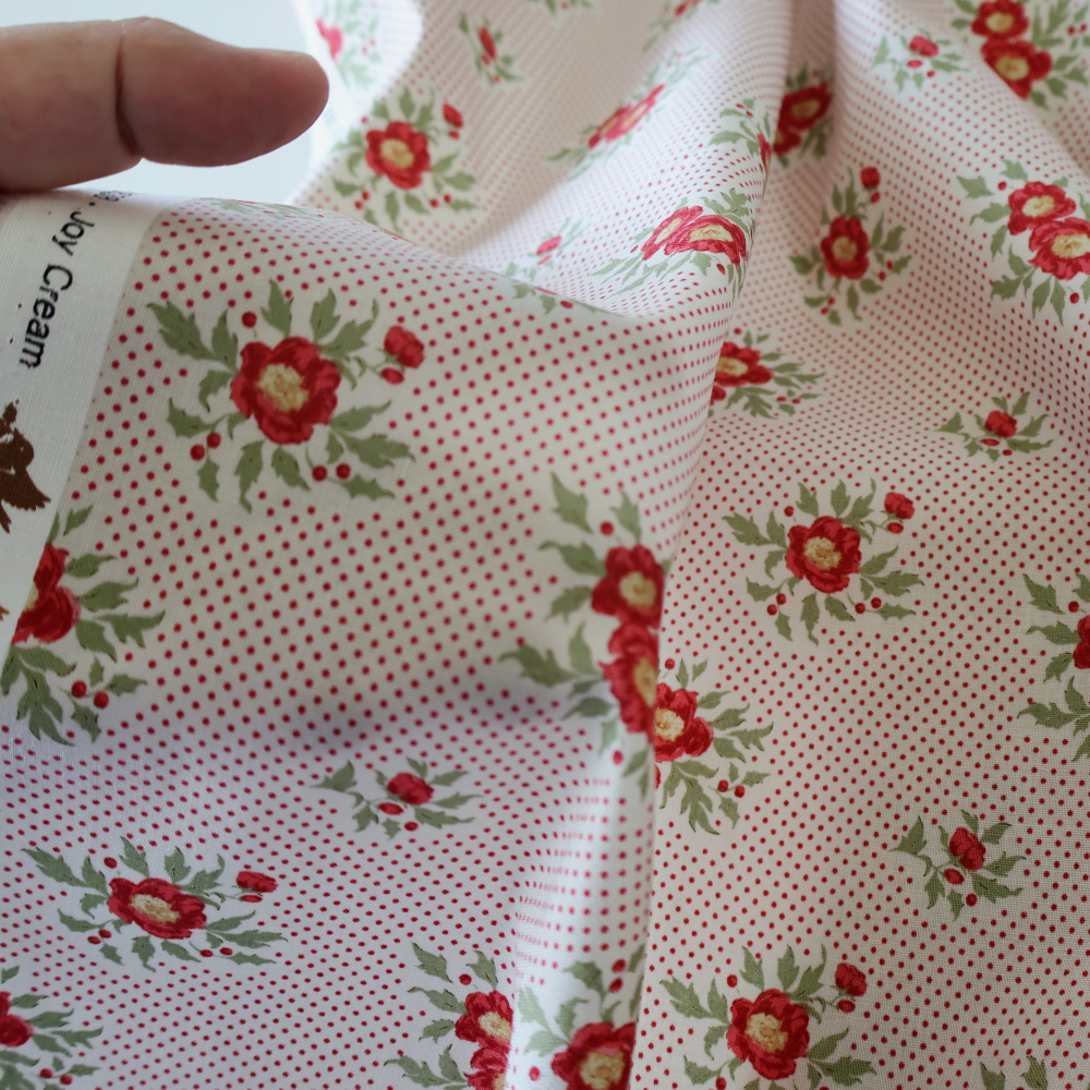 ノルウェー発「Tilda」2025年秋冬コレクションMERRY LITTLE CHRISTMASより、赤いさざんかが散りばめられた「Joy Cream」が入荷しました。冬のソーイングやクリスマスインテリアに映える、華やかでかわいらしいプリントです。
