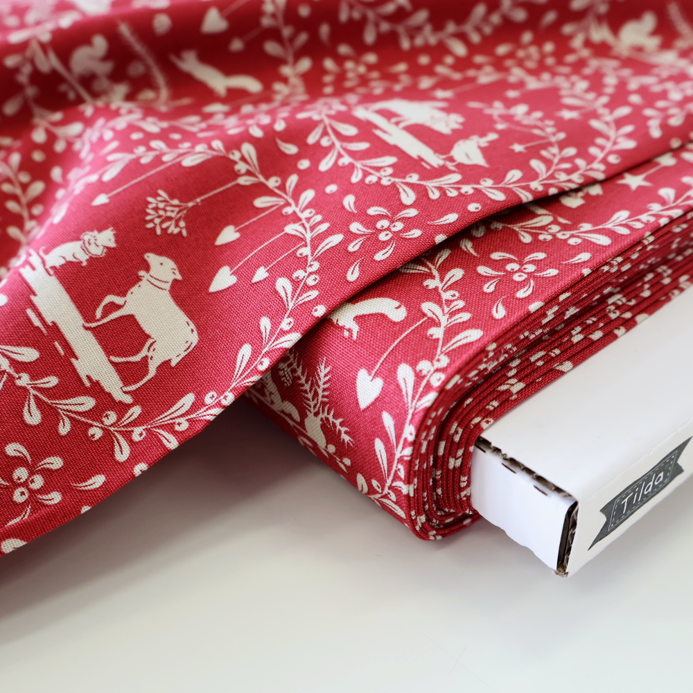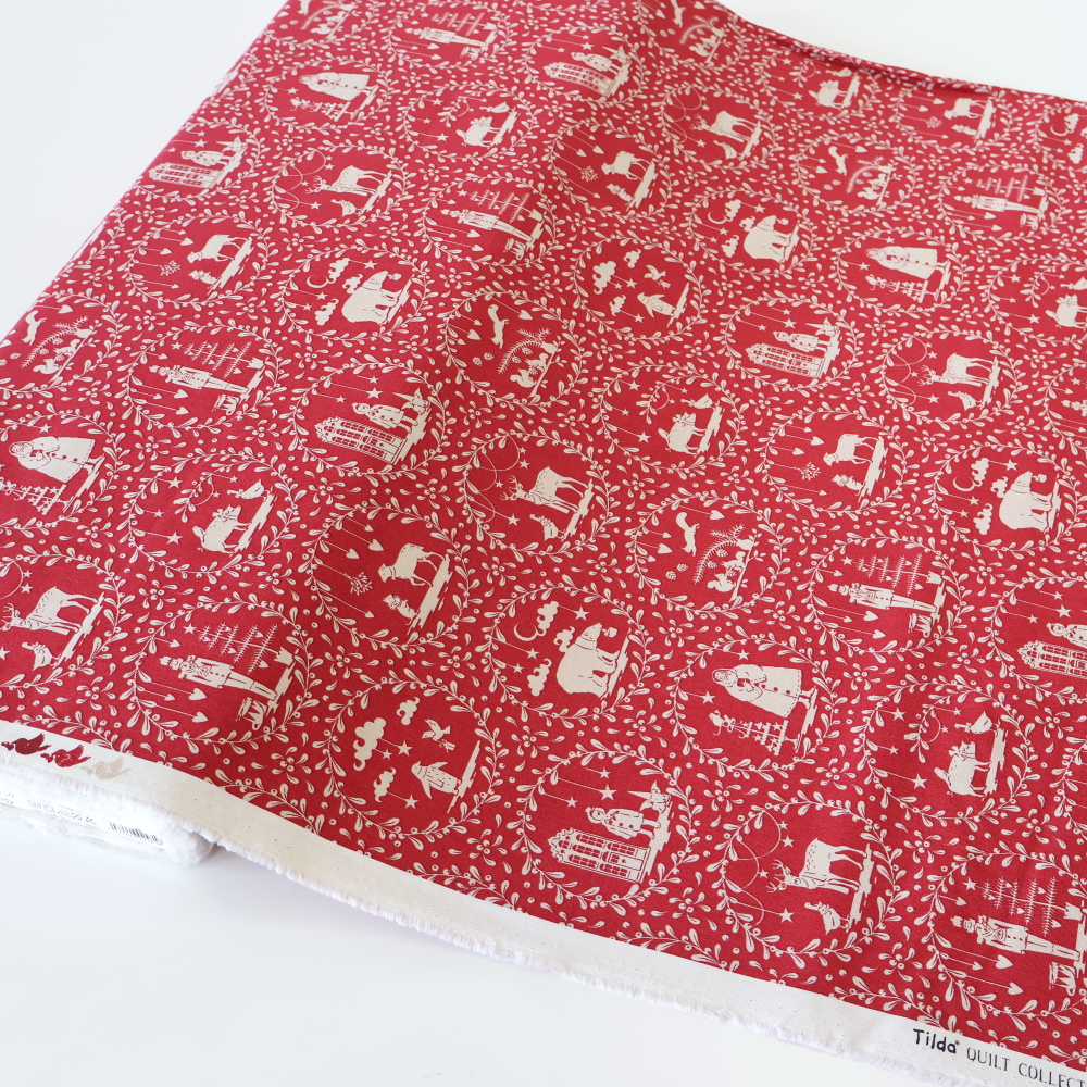 ノルウェーのブランド「Tilda」より、2025年秋冬コレクションMERRY LITTLE CHRISTMASの人気柄「Paperscenes」が入荷しました。小さなリースの中に冬の情景や動物、ツリーが描かれたストーリー性のあるデザイン。深いバーガンディの地色に、温かみのあるクリーム色のプリントが映え、クリスマスの雰囲気をぐっと高めてくれます。リースの中にサンタクロースやトナカイ、くるみ割り人形、北欧の街並みが描かれた幻想的なデザイン。