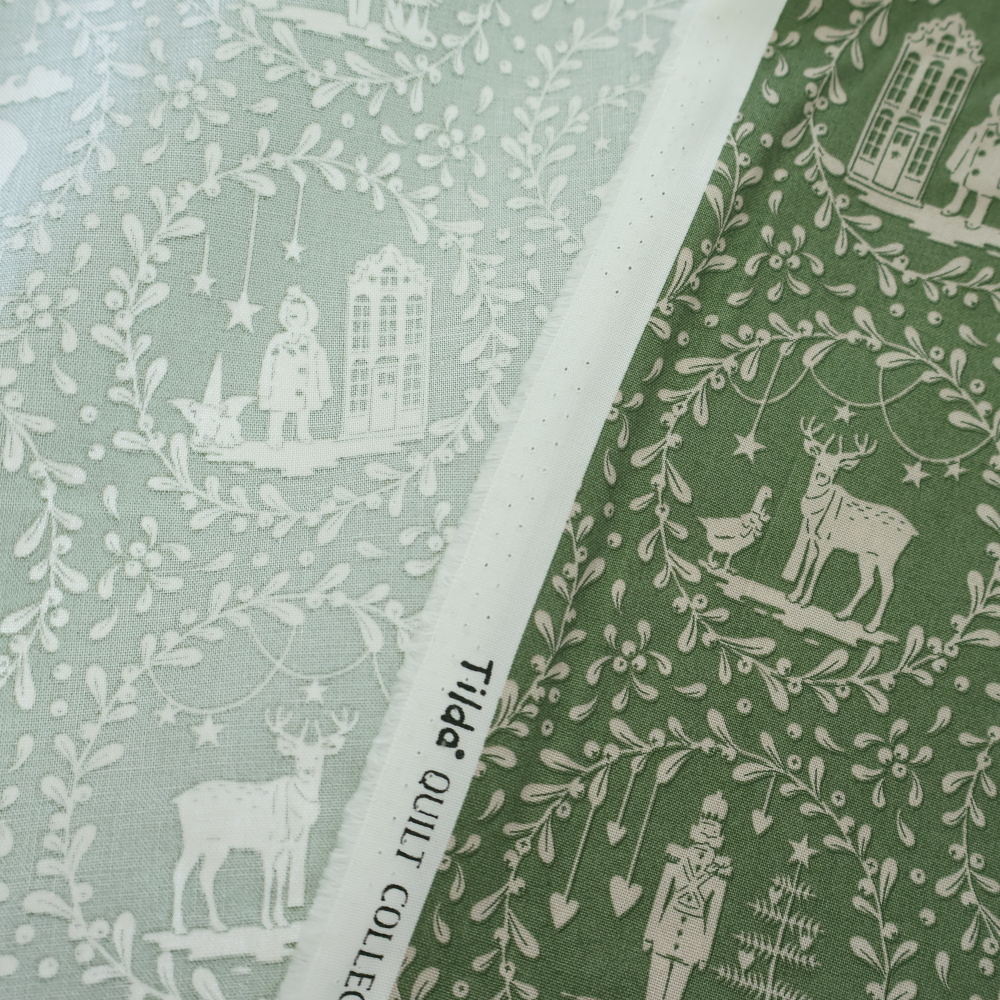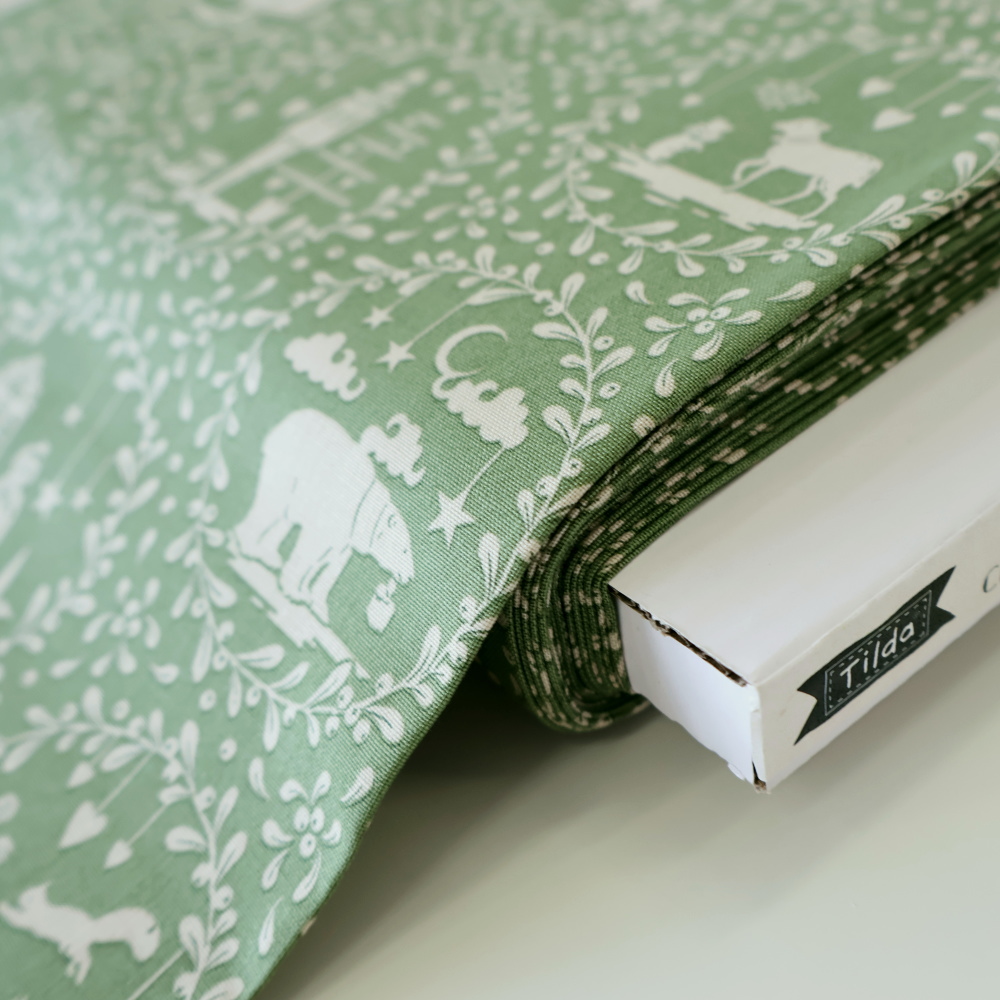 ノルウェー発のブランド「Tilda」より、2025年秋冬コレクションMERRY LITTLE CHRISTMASの「Paperscenes」に新色アーティチョークが登場しました。深みのあるグリーン地に白のモチーフが映える、落ち着いた北欧らしい一枚。リースの中にサンタクロースやくるみ割り人形、北欧の街並み、動物たちが描かれ、まるで物語の1ページを切り取ったようなデザインです。