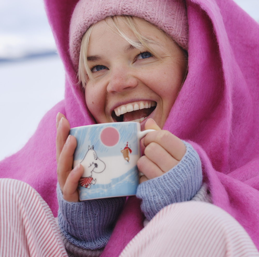 毎年楽しみにされている方も多いアラビアの冬限定マグ。今年はムーミンが氷水に飛び込むユニークなデザインで登場しました。やさしいブルーとピンクの色合いが冬の食卓を明るくしてくれます。普段使いはもちろん、クリスマスの贈り物やコレクションにもおすすめです。