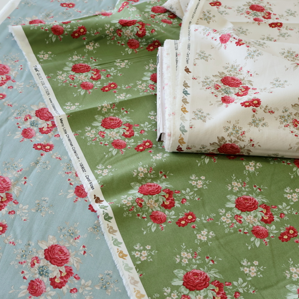 2025年秋冬コレクションMERRY LITTLE CHRISTMASより、可憐なローズ柄「Carol Duckegg(キャロル ダックエッグ)」が入荷しました。 ほんのりグリーンを帯びた淡いブルーに、赤いバラと小花が咲き誇るエレガントなデザイン。 透明感のある色合いが作品を明るく引き立て、冬のソーイングやインテリアづくりにぴったりの一枚です。