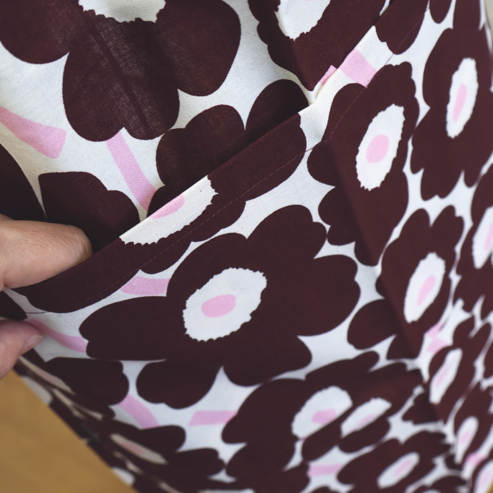 ポケット脇にmarimekkoタグ。シンプルな形に上質感を添えます。