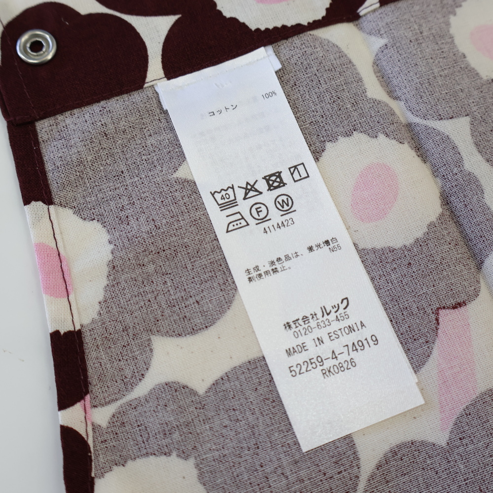 サイズ 約84×84cm北欧フィンランドを代表するmarimekko(マリメッコ)。ブランドの象徴「MINI UNIKKO(ミニウニッコ)」を全面にプリントしたエプロンです。ダークワイン×ピンクの配色がシックで可憐。首紐はスナップで長さ調整、前面には大きめポケット付き。毎日の家事を心地よく、少し特別にしてくれます。