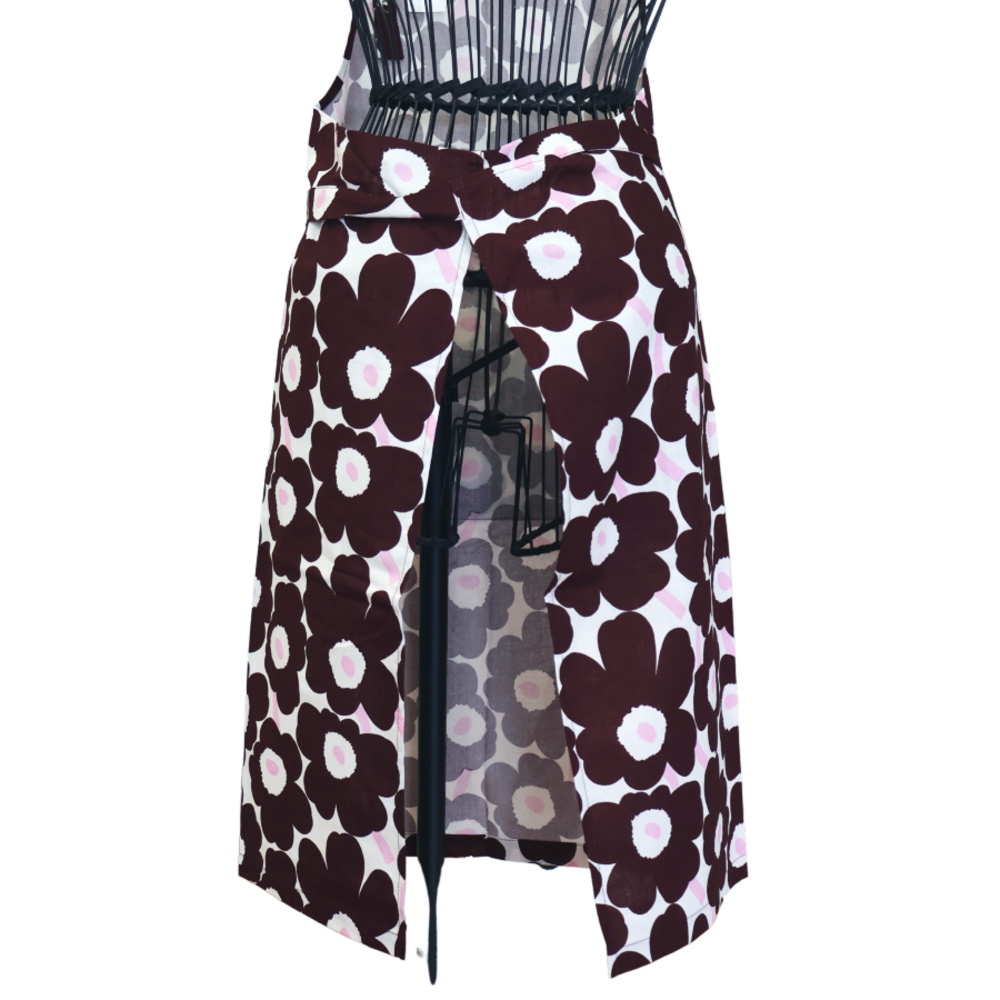 Marimekko(マリメッコ)の人気柄「Mini Unikko」を使った日本限定カラーのエプロン。デザイナーはMaija Isola(マイヤ・イソラ)。ダークワイン×ピンクの配色がシックで可憐です。大きめポケット付きで実用的、ギフトにもおすすめです。