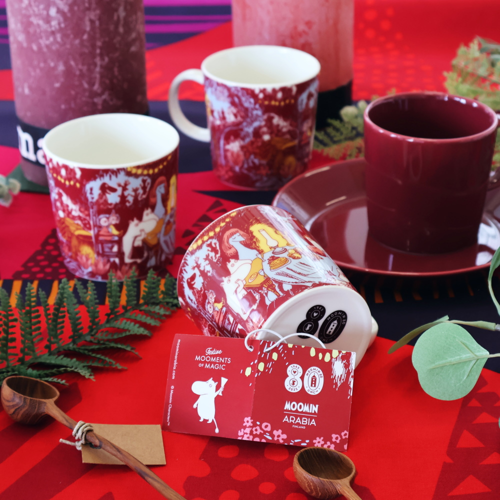 ムーミンの世界観にある「大切な人へ心のこもった贈り物をする喜び」誕生日や季節の行事、年末年始のギフトにもぴったりのフェスティブモーメント コレクションで思い出に残るひと時をお届けします。