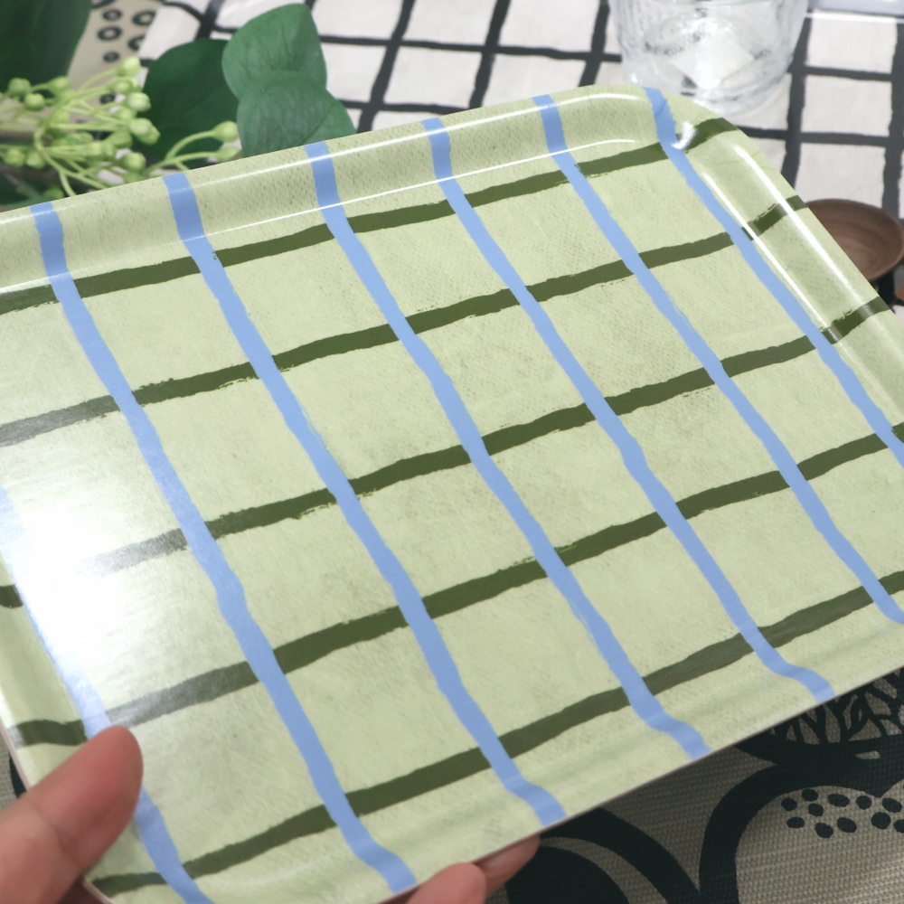 ピスタチオとブルーのラインがさわやかで、使うたびに気分が明るくなります。トレイ自体が軽いので、持ち運びもラク。北欧のデザインを日常に取り入れたい方におすすめです。