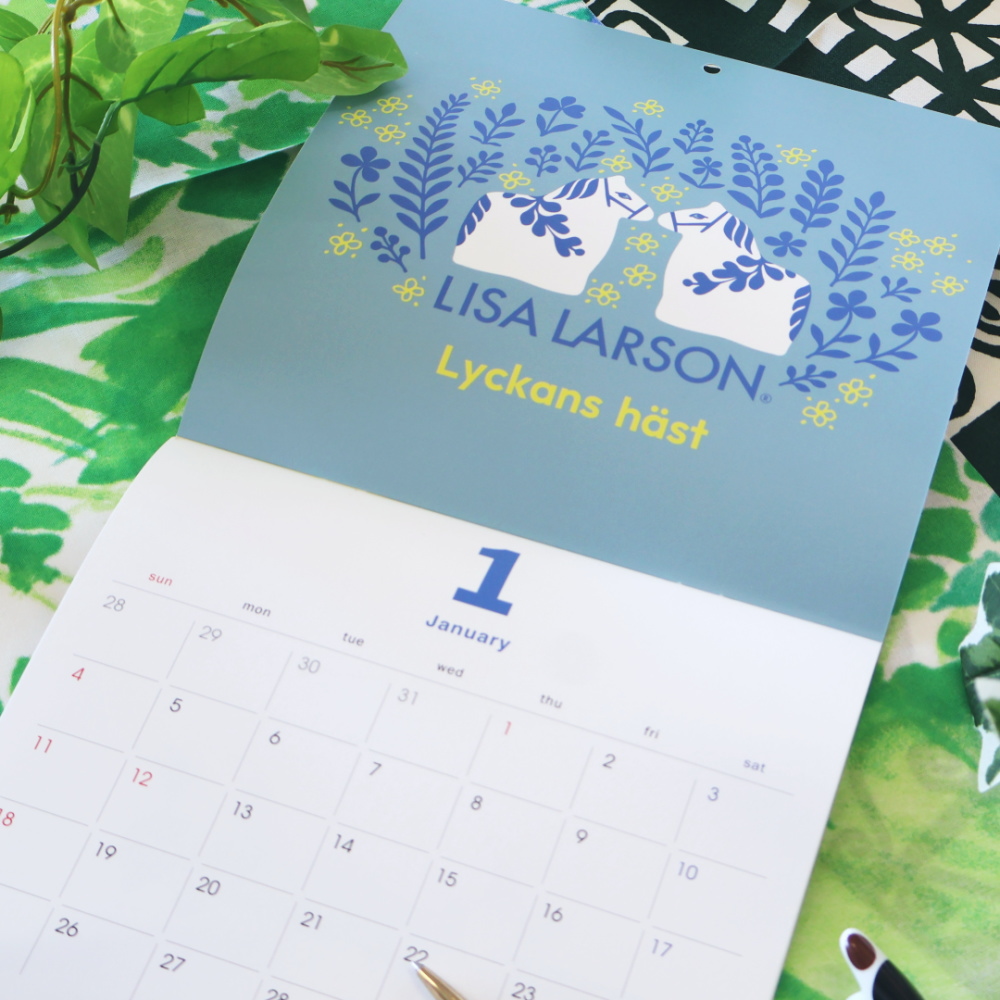 表紙にはリサ・ラーソンの人気モチーフ「Lyckans häst(リュッカンス ヘスト/幸運の馬)」をデザイン。 幸せを呼ぶ馬と花々が描かれた、やさしいブルーの表紙は一年の始まりにぴったりです。