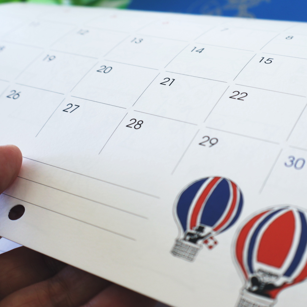 広めのマスで予定が書きやすいレイアウト。