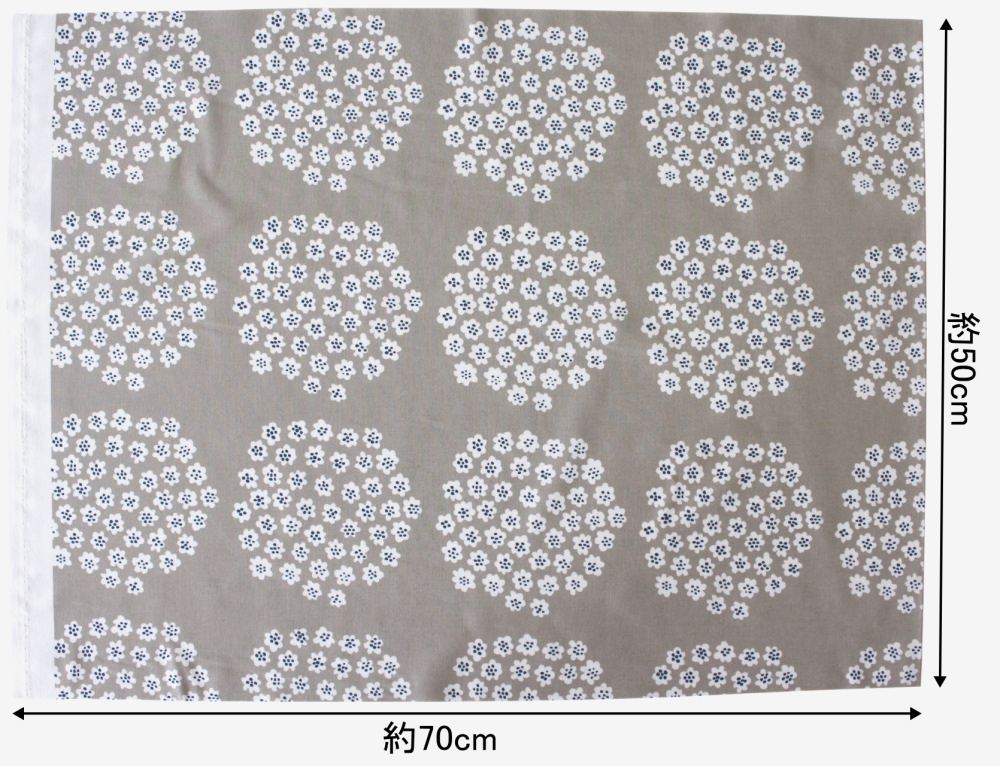 小物製作やファブリックパネルなどに使いやすい、おためしサイズのハーフカットクロスです。小花が円形にまとまった柄なので、面積が小さくても大きくてもバランスよく仕上がります。