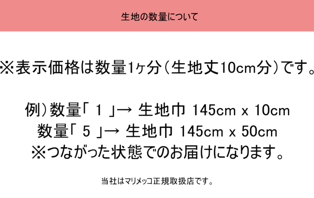 数量1=生地丈10cm の切り売りです。