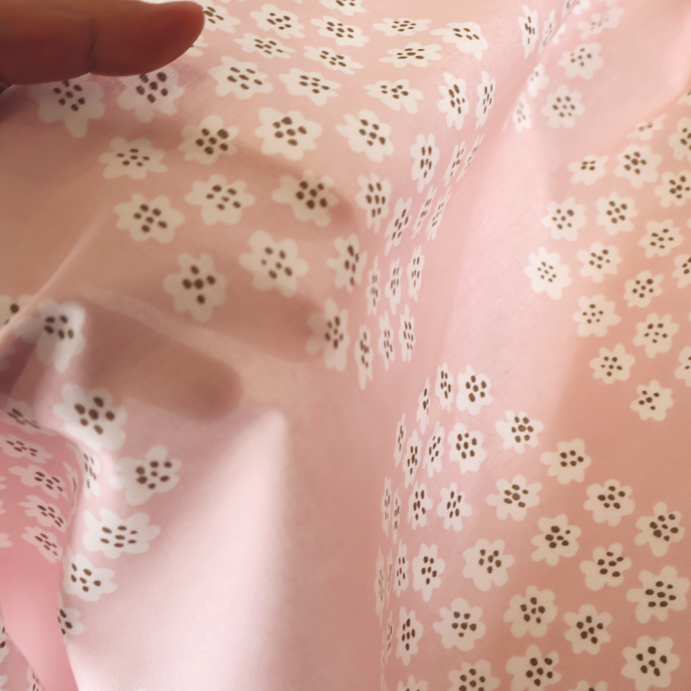 ◇スタッフより 小さな花が集まって円を描くプケッティは、可憐さの中に整ったリズムがあり、甘くなりすぎないのが魅力です。ライトピンクはやわらかく穏やかな色合いで、白やベージュ、木の家具ともよくなじみます。大きな面積で使っても圧迫感がなく、空間をやさしく包み込むような印象に仕上がります。