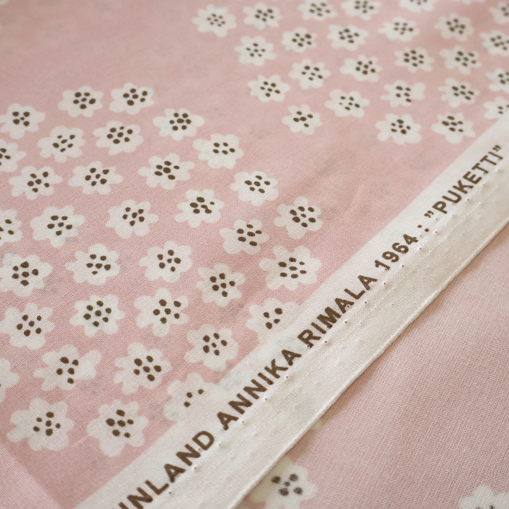 小さな花がぎゅっと集まった「PUKETTI(プケッティ)」の日本限定カラー、ライトピンクです。やわらかなピンク地に白い小花が整然と並び、上品で可憐な印象に仕上がっています。テキスタイルデザインはAnnika Rimala(アンニカ・リマラ)。