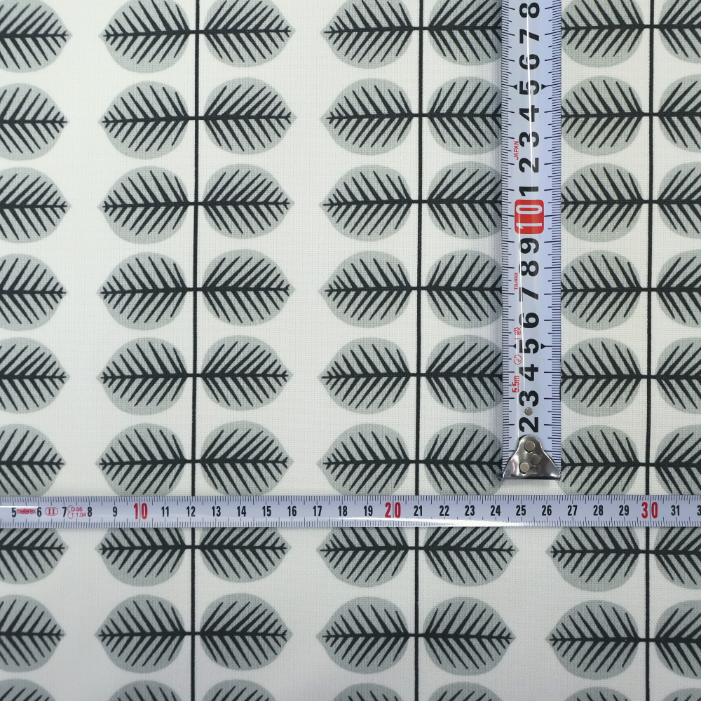 1つの葉っぱのモチーフは、横約5cm×縦約4cmほど。テーブルクロスやカーテンはもちろん、小物づくりにも使いやすいスケール感です。