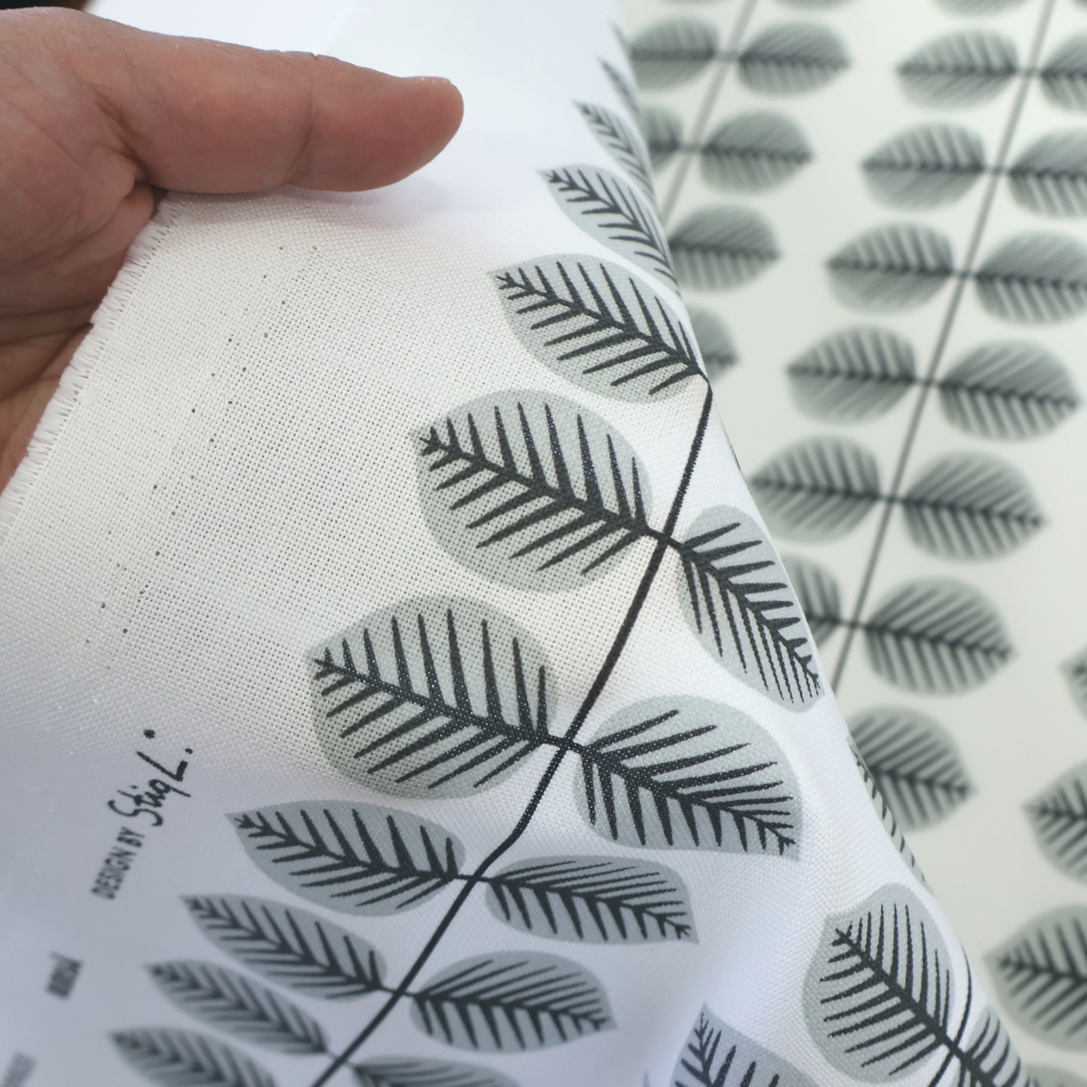 生地の耳には「DESIGN BY Stig L.」の表記入り。作品の一部として、あえて耳を見せるデザインに仕立てても素敵です。