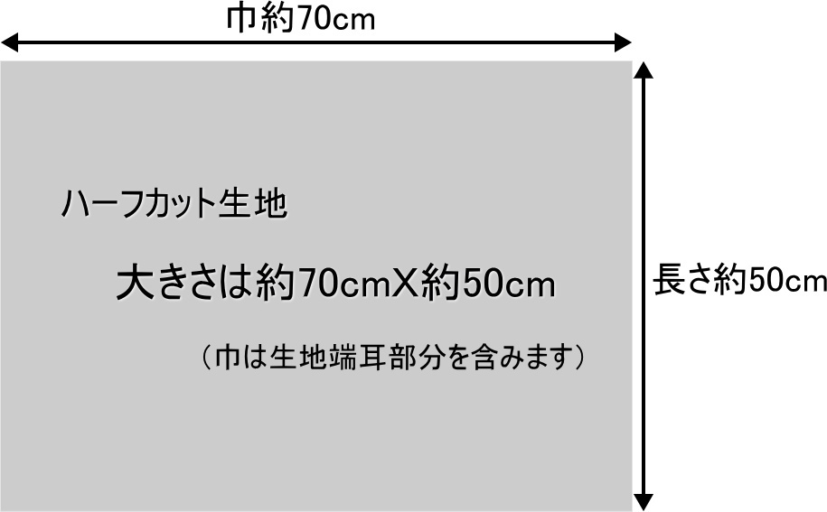 サイズは約70×50cm。生地幅を半分にカットしたハーフカットで、小物づくりやパネル製作などにちょうどいい大きさです。